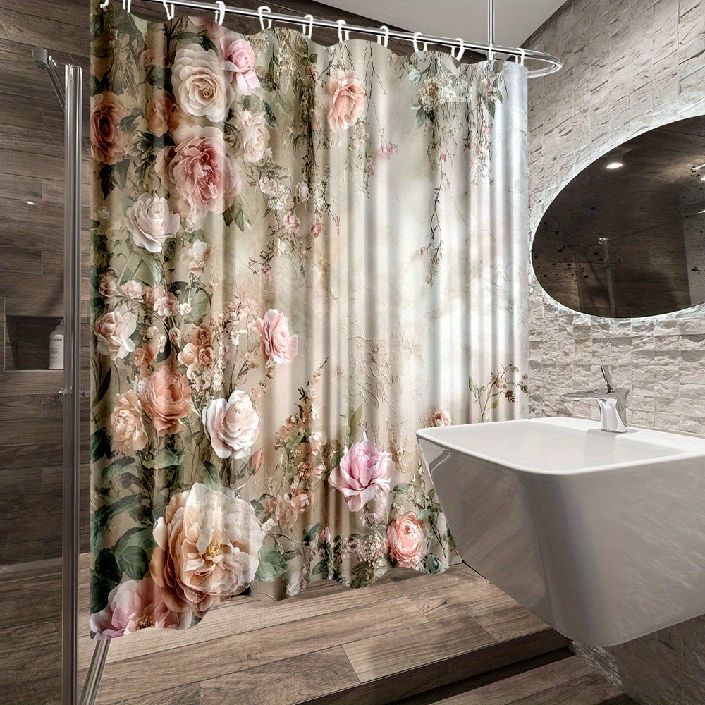 Elegant Floral Shower Curtain With Roses for Bathroom Decor