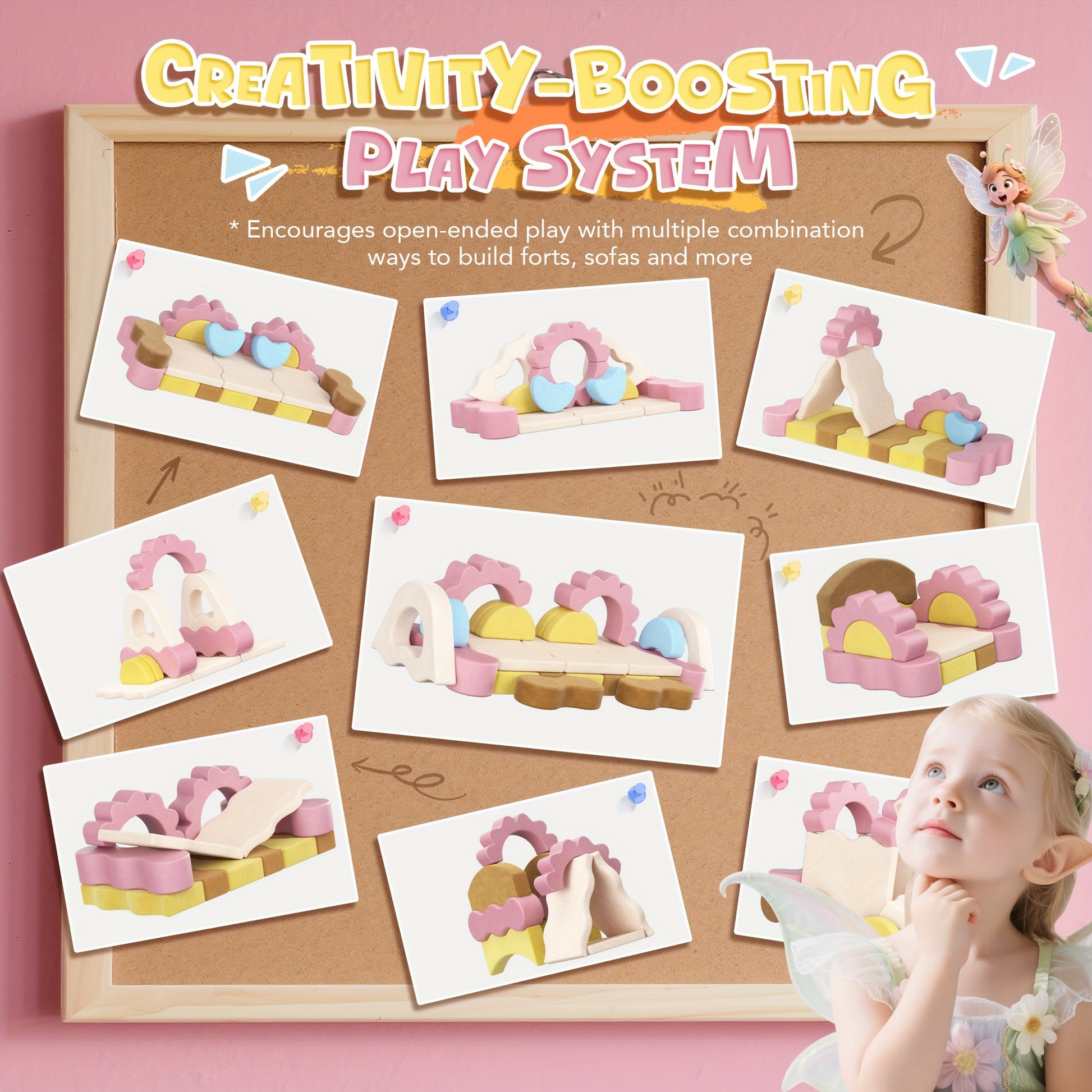 - Ages 3+ with a soft pink finish and contemporary look, this lightweight modular set invites independent rearranging, imaginative setups, and easy storage after big play sessions.