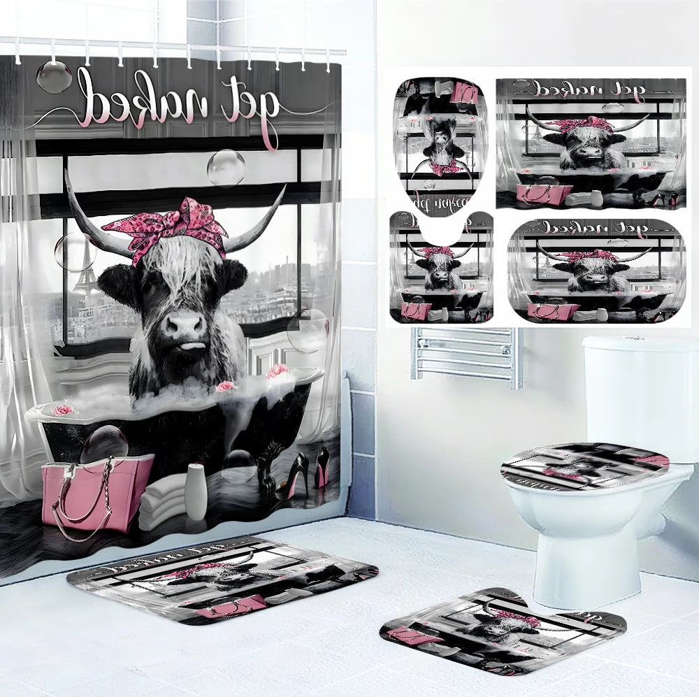 Cow Window Shower Curtain 4pc Polyester 2D Print Modern Home
