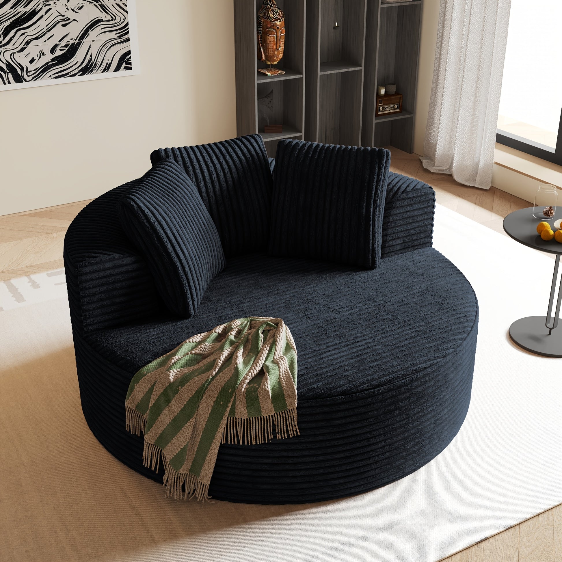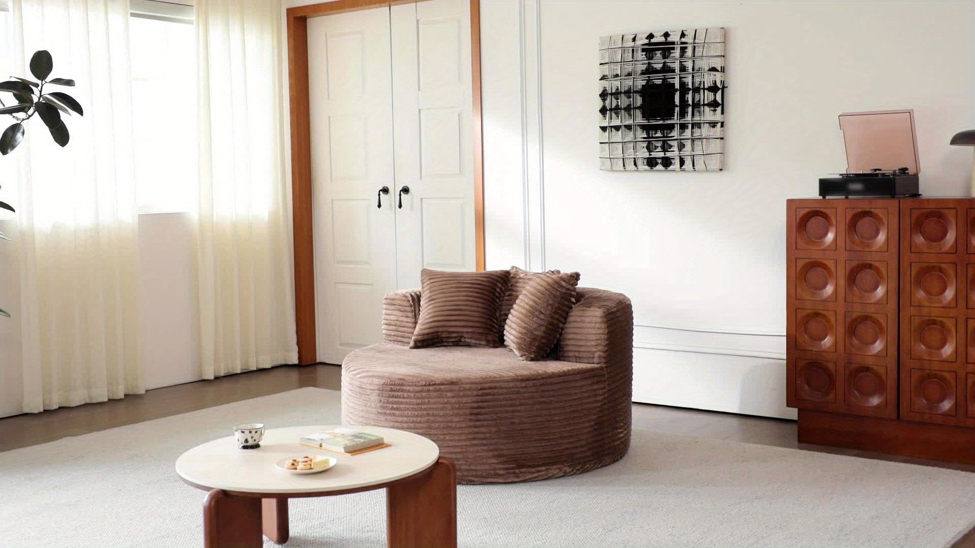 Sink into a plush corduroy round lounge that elevates your living space with effortless comfort and versatile seating.