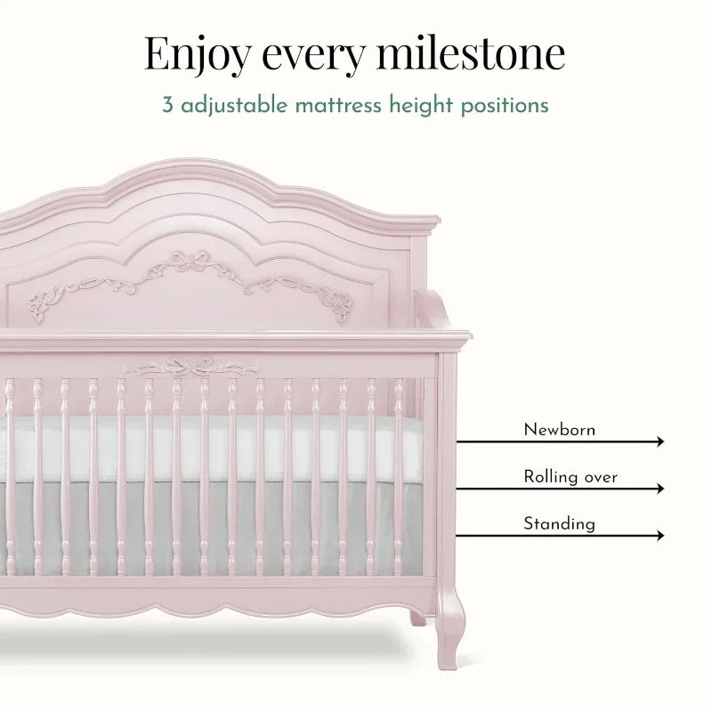 This 5-in-1 Convertible Crib in Dusty Rose grows with your family from baby days to the big kid bed.