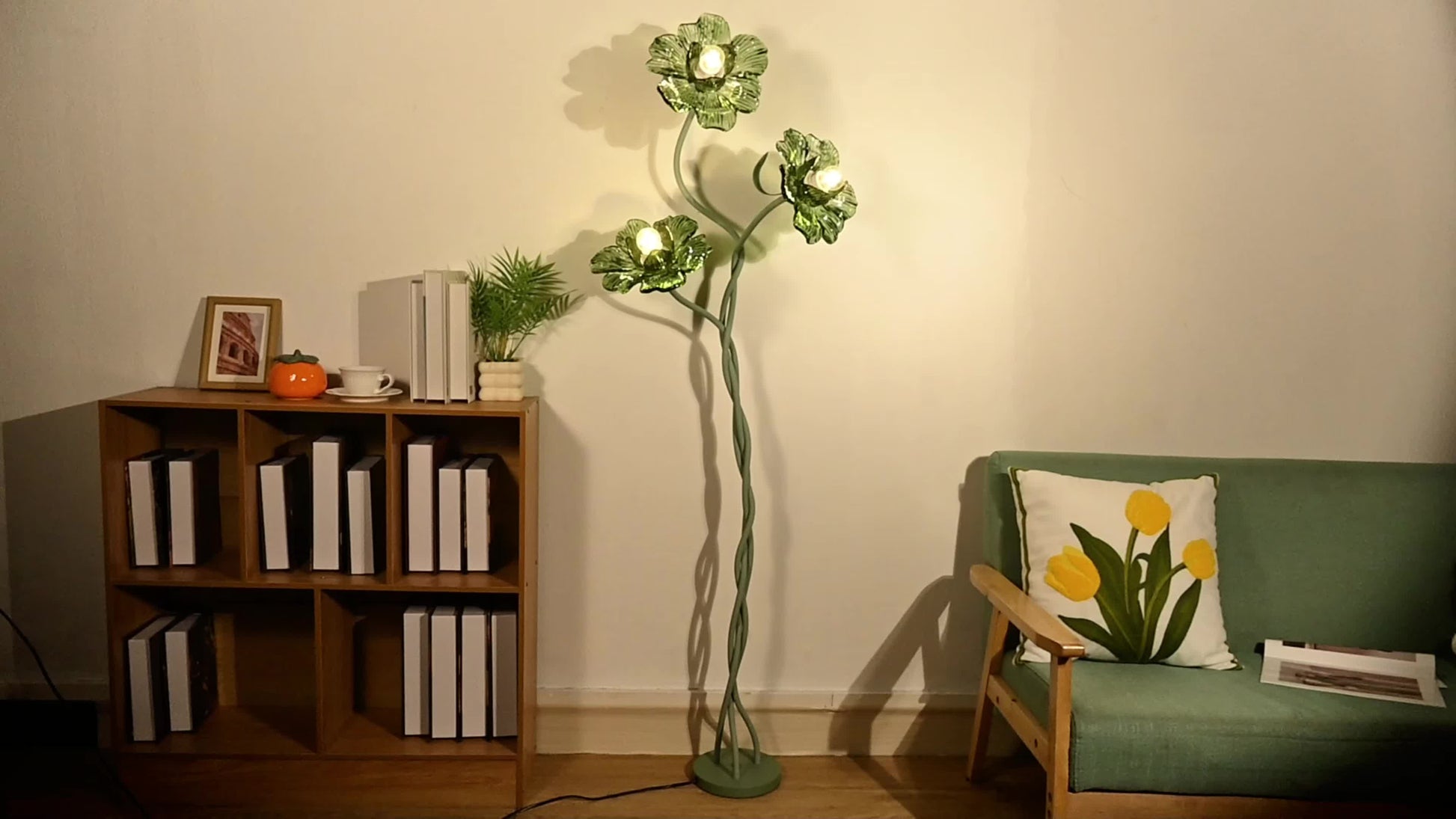 Brighten your space with the Cherry Blossom Three-Head Floor Lamp, a versatile swing-arm centerpiece that delivers adjustable, flower-inspired lighting at the push of a button.