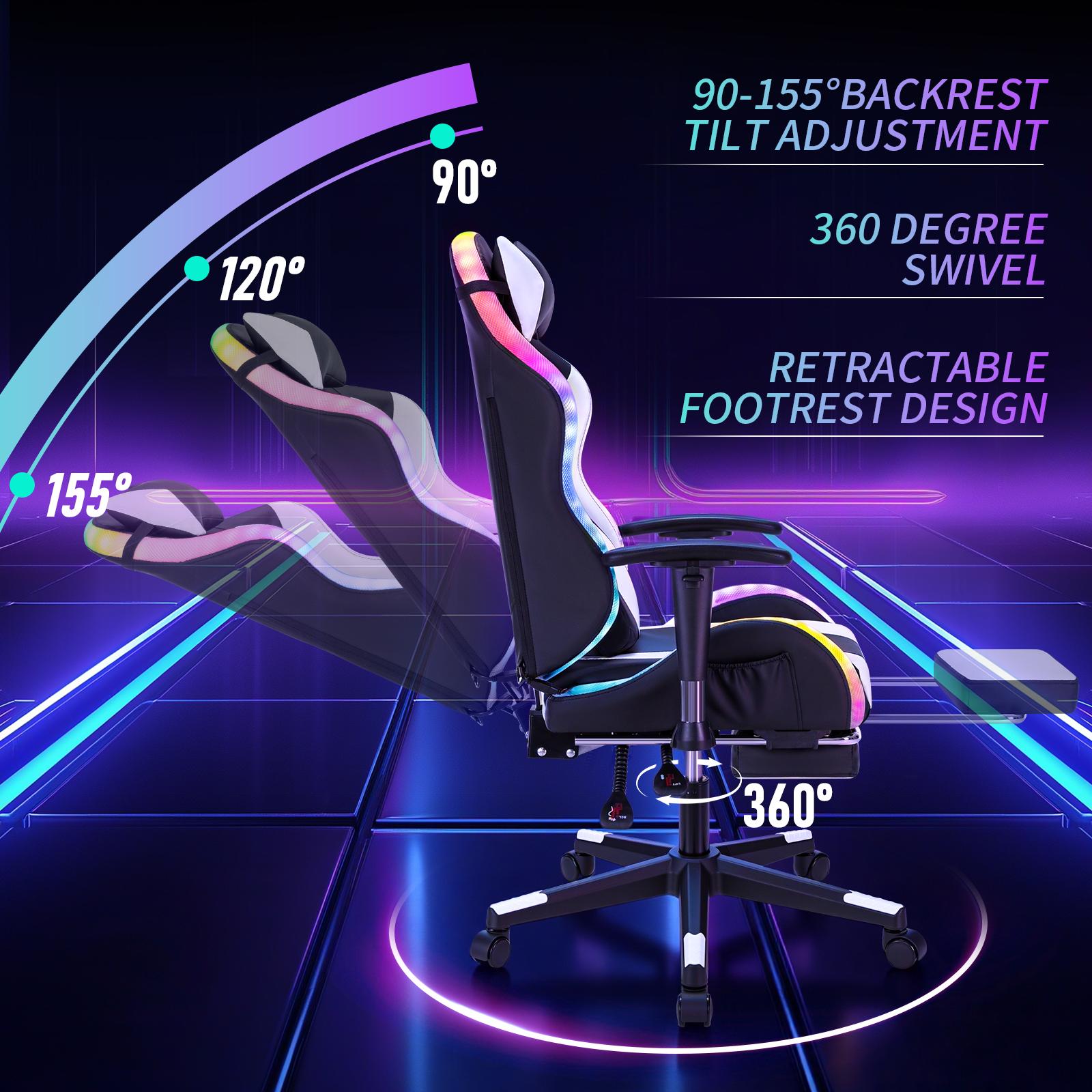 Gaming Chair With RGB Lights Ergonomic Gamer Chair With Footrest