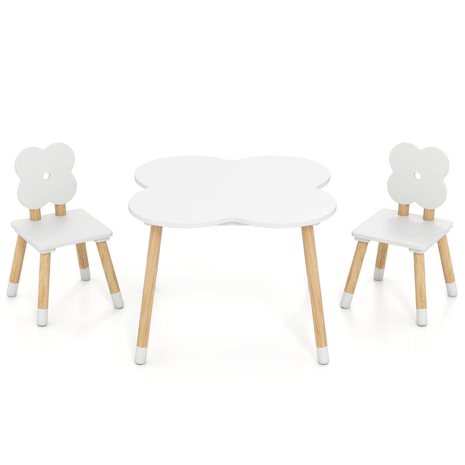 LIFEZEAL Kids Table And Chairs Set Flower Shaped Pine Wood