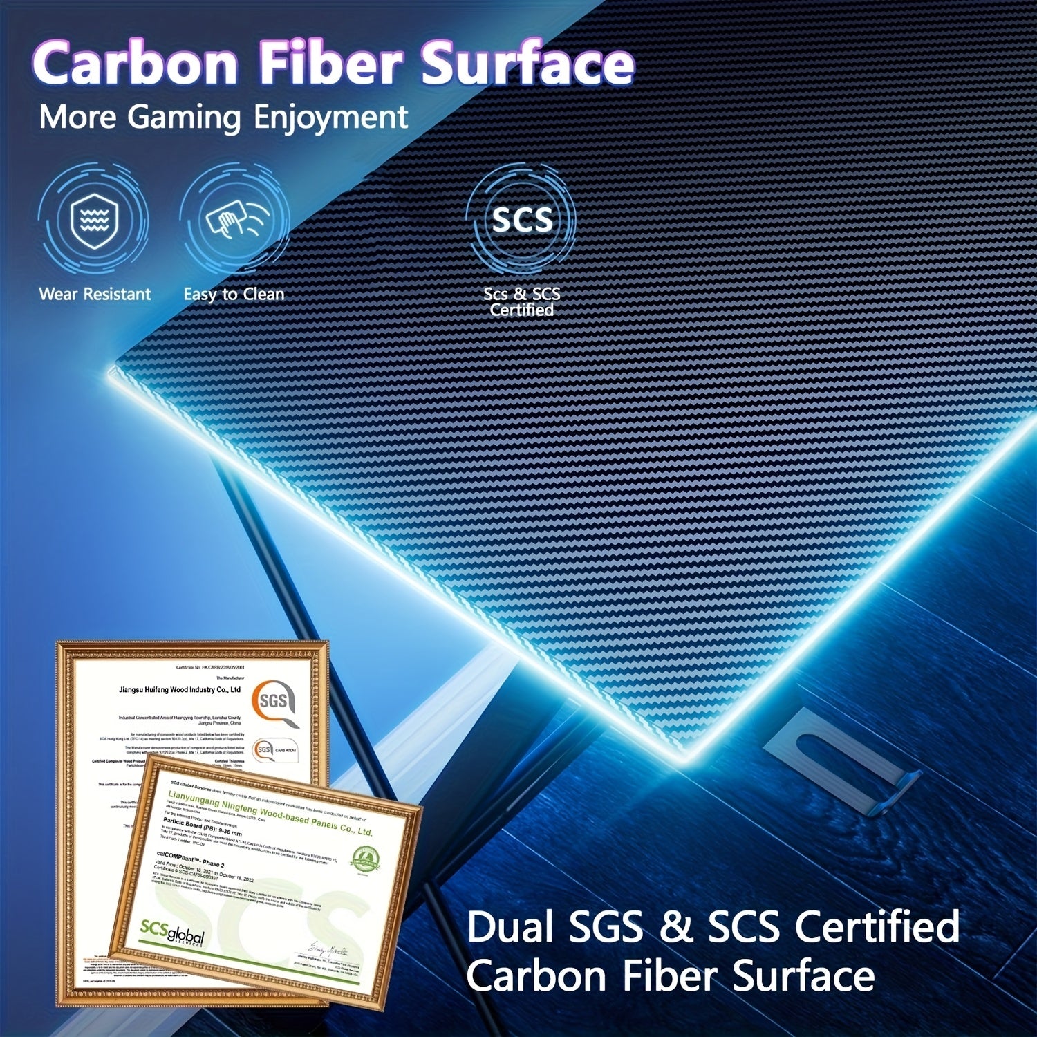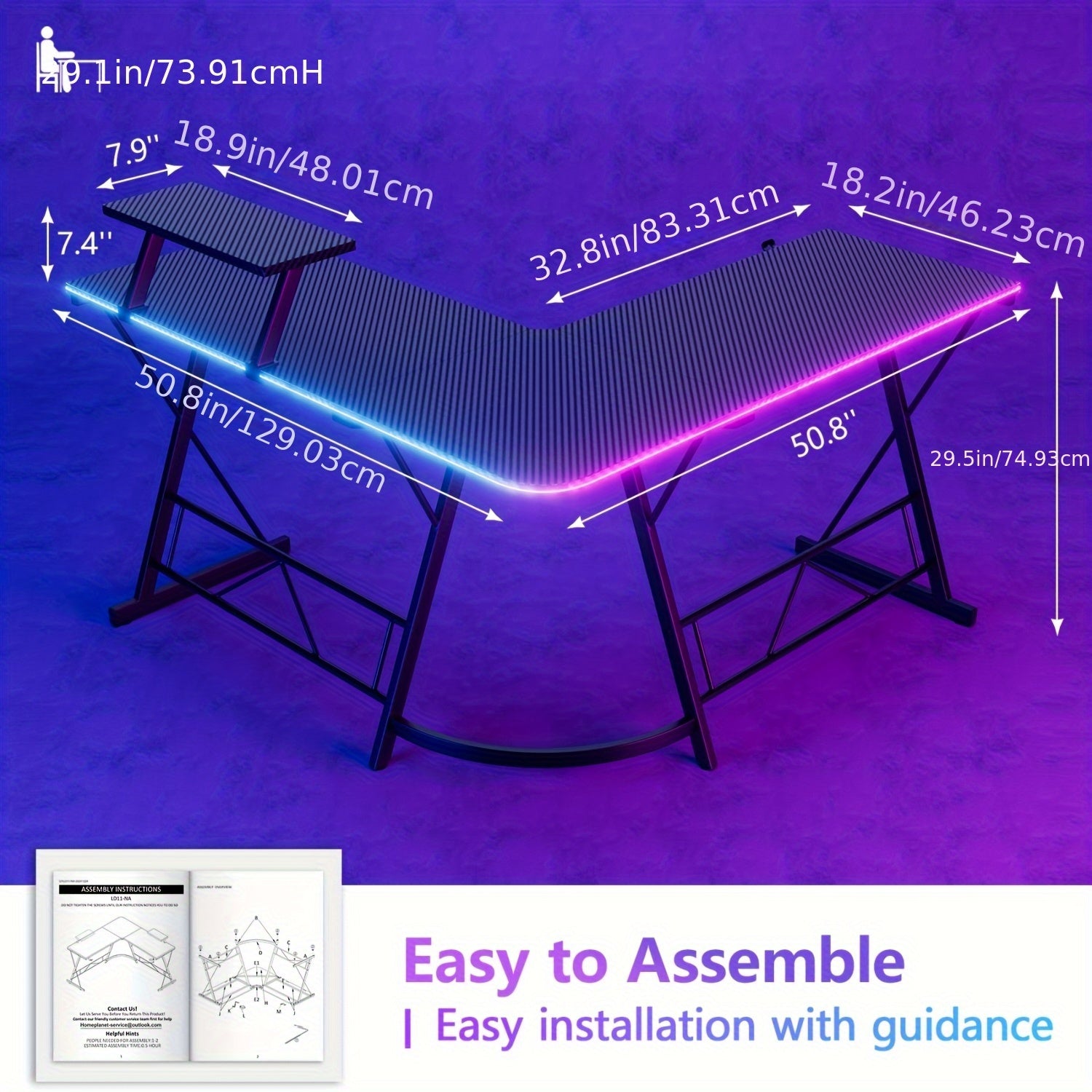 - Polished black finish with carbon-fiber accents and a wood base deliver a durable, premium feel, while the L-shaped footprint maximizes corner workspace.