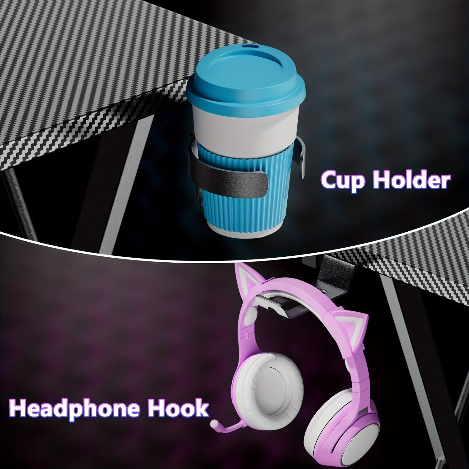- Built-in accessories include a headphone hook and cup-holders for quick access, plus closed storage under 3.2 cubic feet to hide cables, controllers, and manuals.