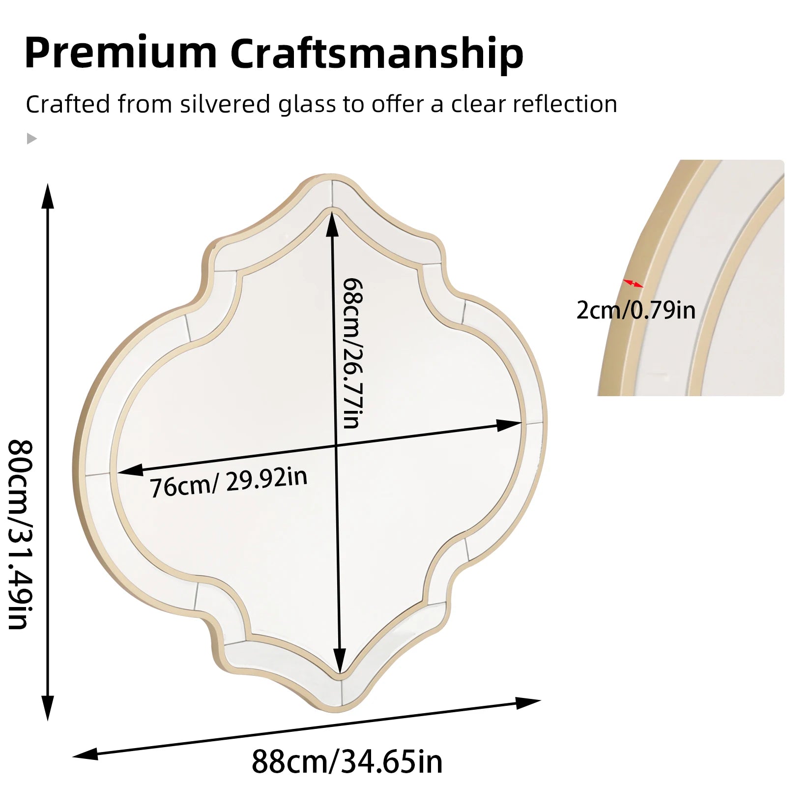 Golden Rim Framed Wall Mirror for Living Room Decor Elegant