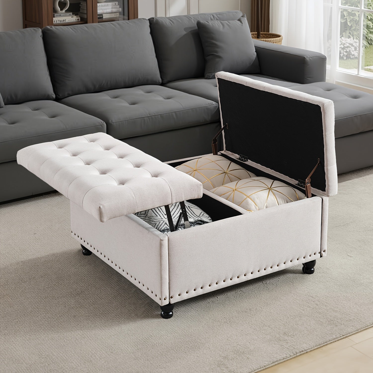 - Hidden storage under a removable lid for blankets, games, seasonal decor, or remote controls, keeping your living areas tidy and surfaces free for daily tasks.